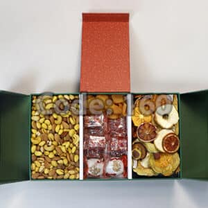 جنس جعبه : مقوا داخلی 2 میلیمتر یا 3 میلیمتر + رویه گالینگور، چرم، گلاسه یا تحریر یا کاغذ فانتزی (روکش سلفون مات یا براق-یووی موضعی – با امکان ضرب طلاکوب)