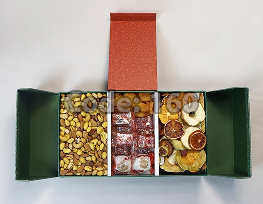 تمام آیتمهایی که داخل پکها قرار داده شده، از مواد درجهیک تهیه شدن و توی بستهبندی خیلی مرتب و چشمنواز کنار هم چیده شدن. ترکیب رنگها، تنوع خوراکیها، و حتی نحوه قرارگیری هر چیز توی باکس، کاملاً حسابشدهست تا هم ظاهر هدیه جذاب باشه، هم موقع باز کردنش اون حس “وای چه خوشگله!” رو به طرف مقابل بده.